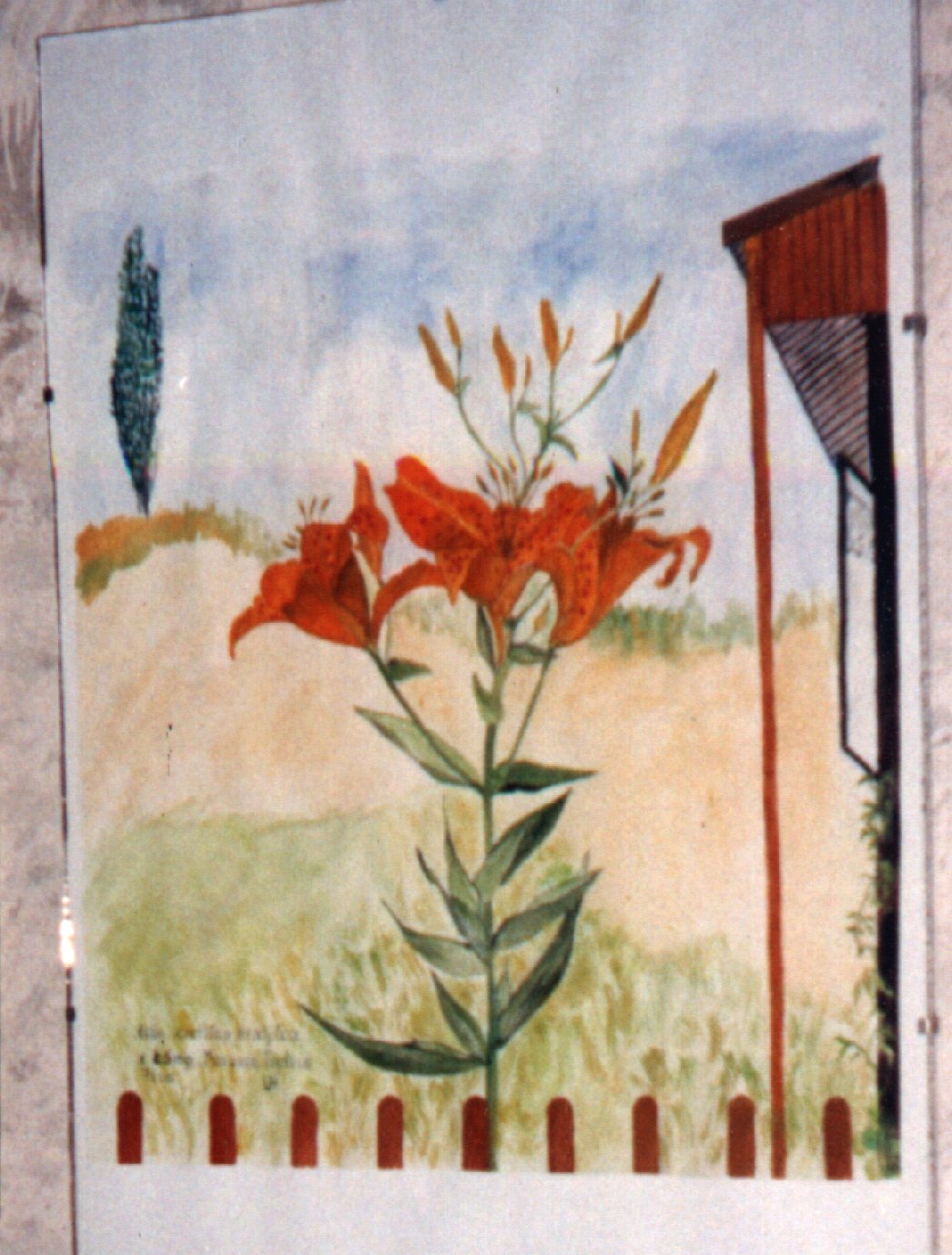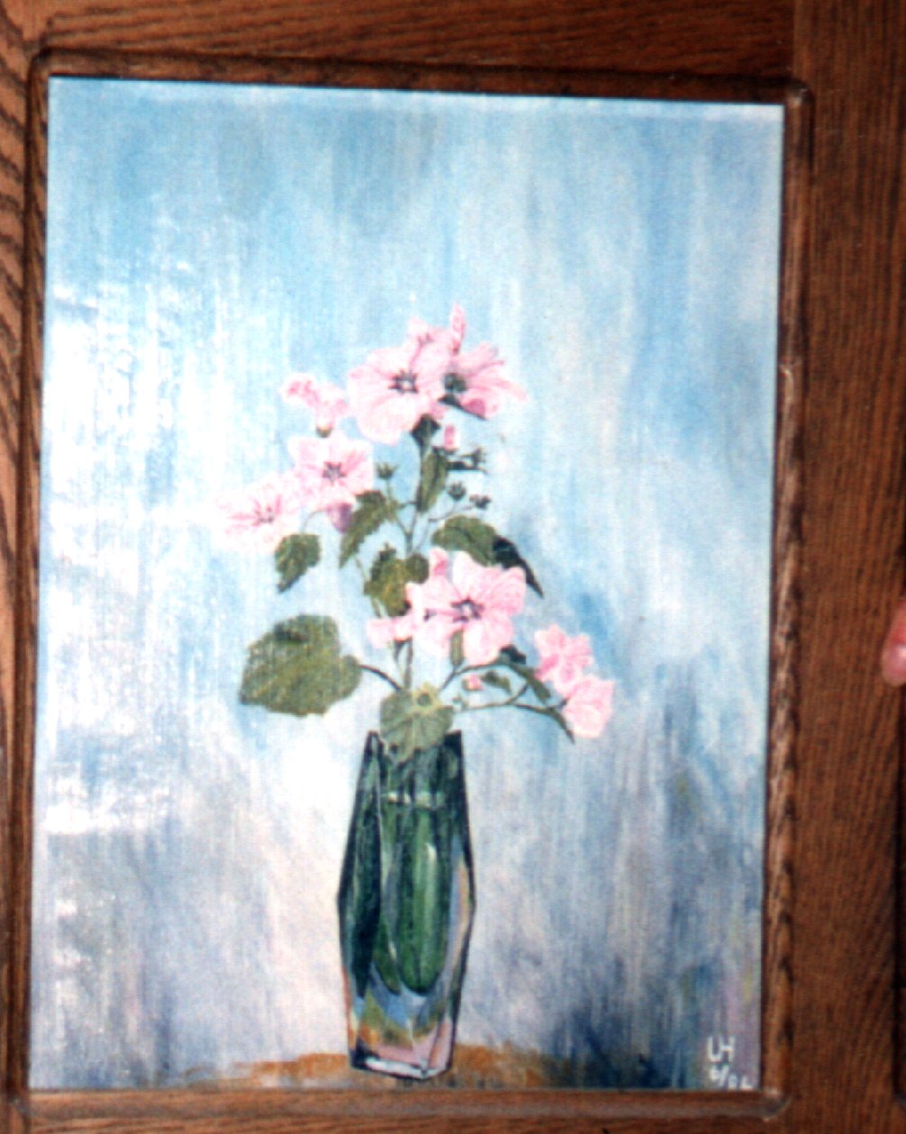 Diese Gemälde hängen zum größten Teil in ihrer Wohnung und wurden mit einem einfachen Fotoapparat fotografiert. Um den Blitz möglichst nicht im Bild spiegeln zu lassen, wurden die Aufnahmen tlw. etwas versetzt aufgenommen. Ich bitte für die teilweise nicht optimale Qualität um Entschuldigung, aber der Fotograf (Ursulas Schwiegersohn) ist kein Profi.
